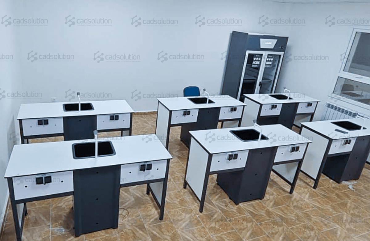 L’apprentissage des sciences nécessite un environnement à la fois stimulant et sécurisé. Pour cet établissement scolaire situé à Alger, CADSolution a conçu une salle de travaux pratiques (TP) optimisée. L’agencement favorise l’interaction entre l’enseignant et les élèves tout en respectant les normes de sécurité strictes requises en milieu éducatif.