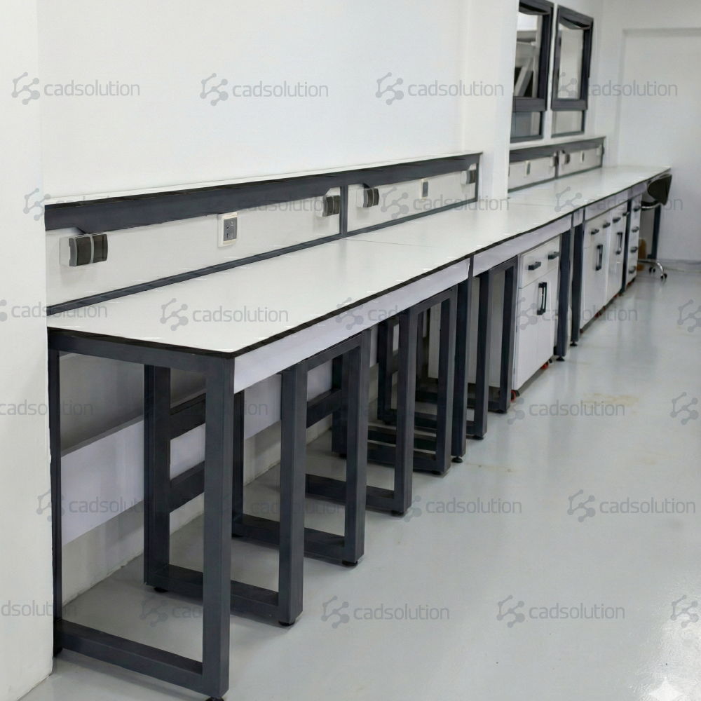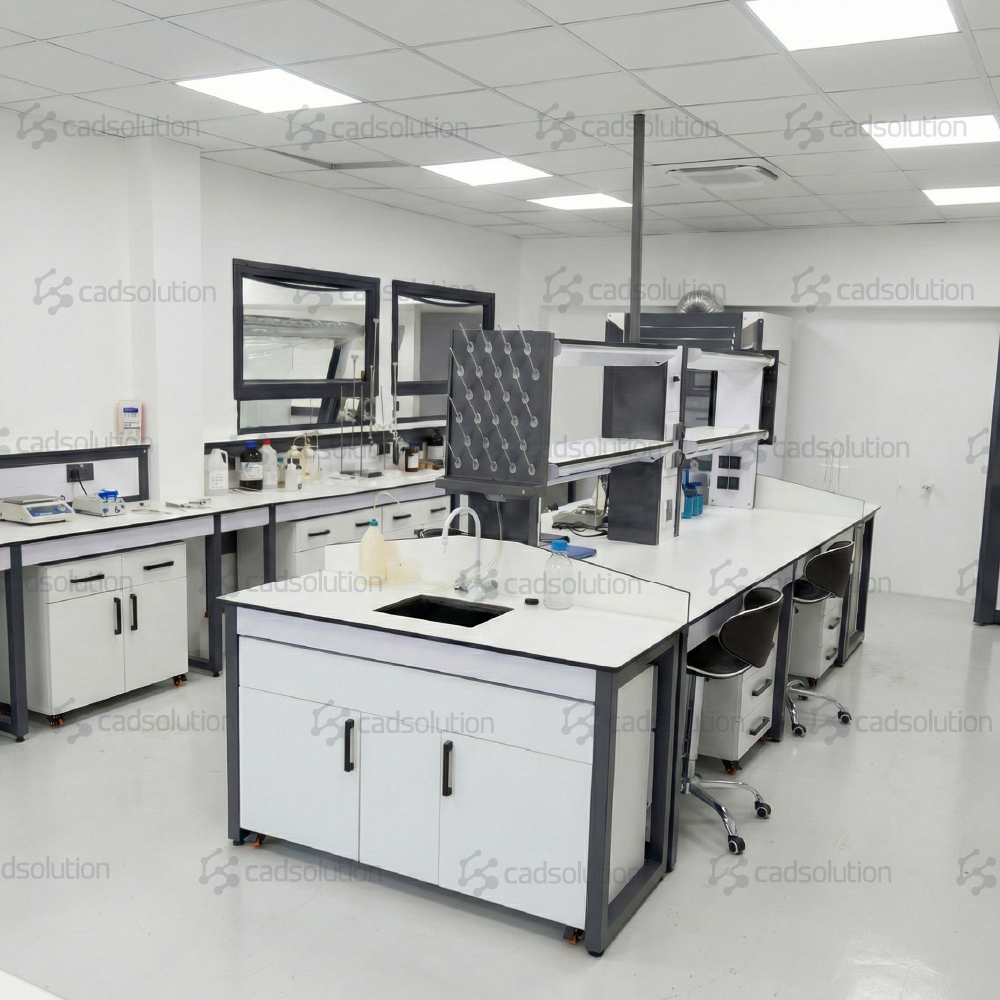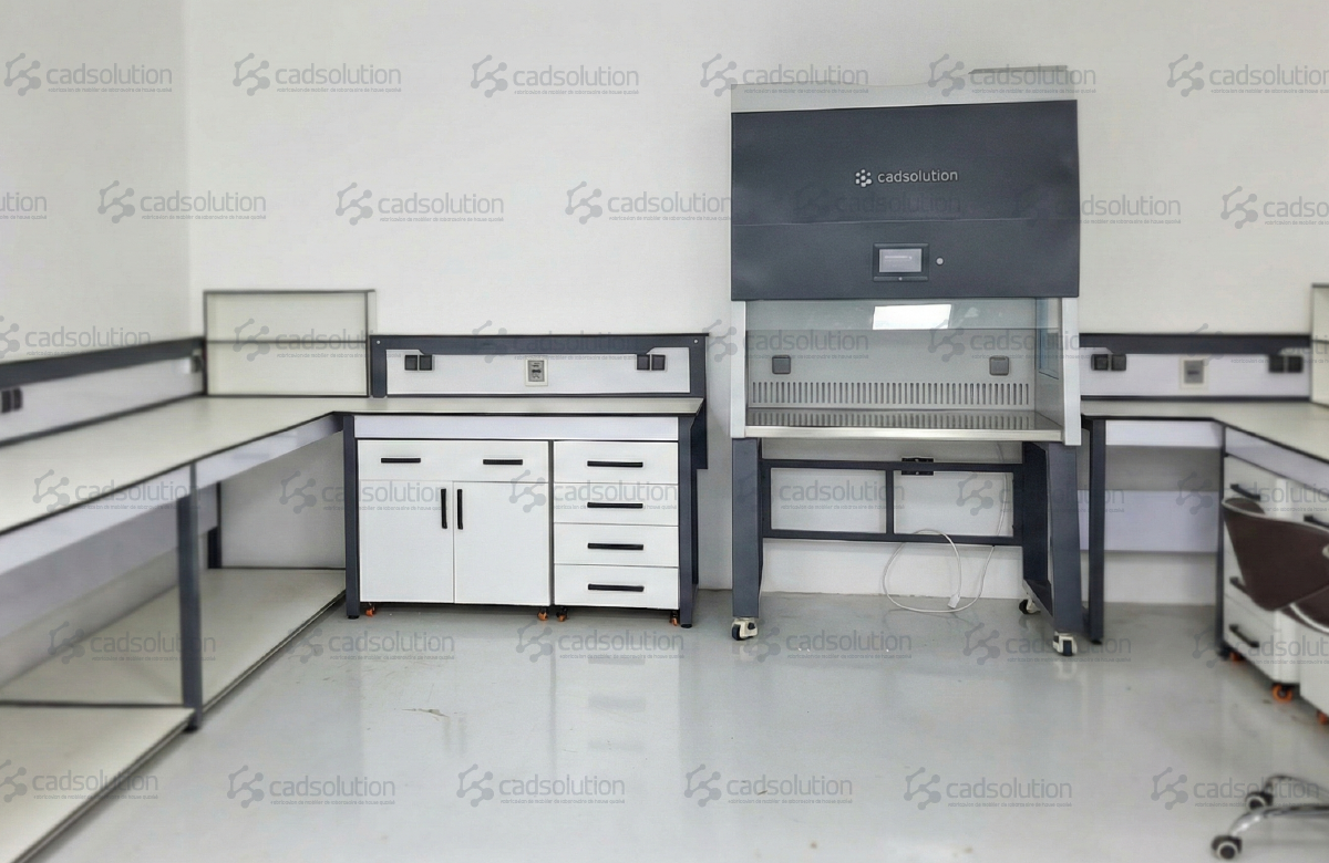 Ce projet, réalisé dans la wilaya d’Oran, illustre parfaitement la capacité de CADSolution à équiper des laboratoires multidisciplinaires. L’objectif était de créer un espace unique permettant à la fois les manipulations chimiques lourdes et les travaux biologiques stériles, tout en optimisant la circulation grâce à un îlot central fonctionnel.