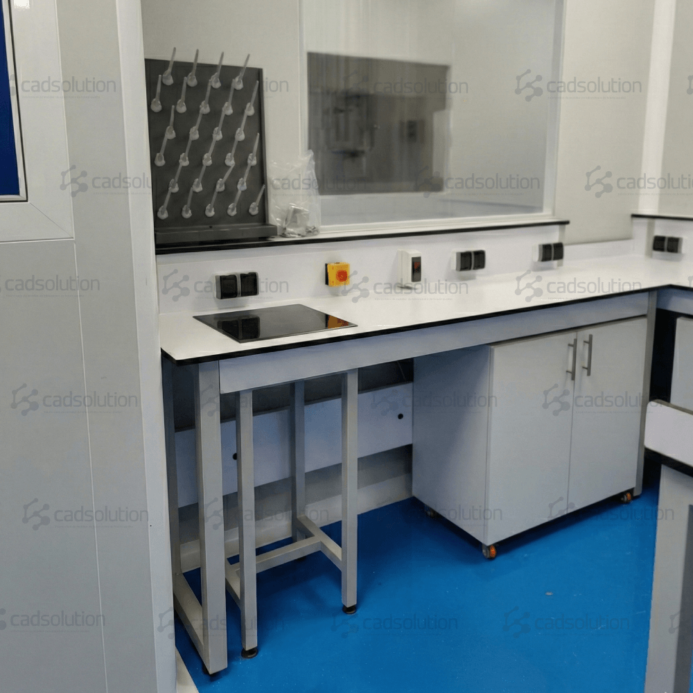 Ce projet réalisé dans la wilaya de Constantine se distingue par une gestion rigoureuse des flux et de l’hygiène. CADSolution a pris en charge l’aménagement complet de la zone technique (laboratoire) ainsi que la zone de transition pour le personnel (vestiaires), garantissant un environnement de travail conforme aux normes de propreté les plus strictes.